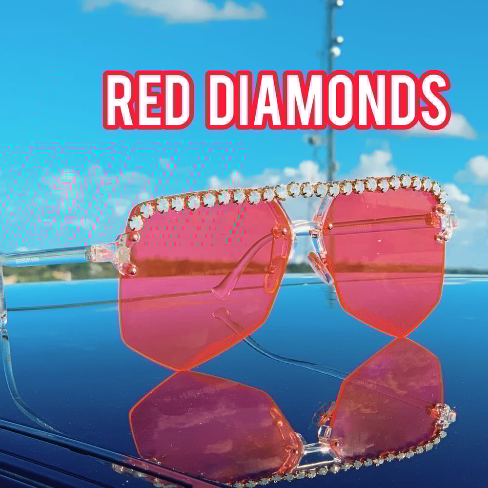 These lenses are designed to kill any room! Custom made by Nino Browns personal jeweler. Red lenses and white diamonds ♦️ These lenses are rated The #1 designer shades of the year!